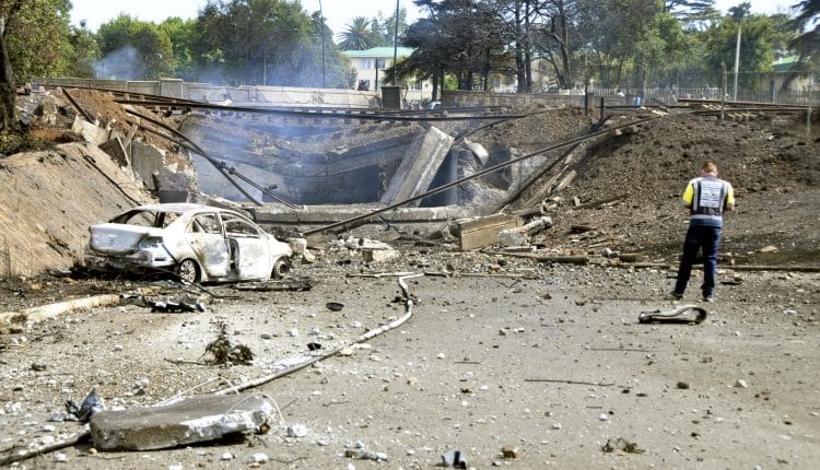 Le camion s’est coincé sous un pont, à proximité d’un hôpital, mais aussi d’habitations samedi matin. « Les pompiers sont intervenus, mais malheureusement, le camion a explosé », a précisé à l’AFP William Ntladi, porte-parole des services d’urgence de cette zone.
