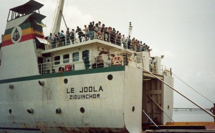 Le bateau »Le Joola » qui assurait la liaison maritime Ziguinchor-Dakar a fait naufrage le 26 septembre 2002 au large des côtes gambiennes faisant 1863 morts et 64 rescapés, selon un bilan des autorités sénégalaises.