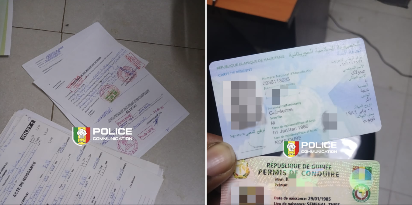 La fouille de ses effets personnels a mis au jour un important lot de documents vierges ou falsifiés provenant de plusieurs localités, ainsi que des pièces d’identité étrangères. Les investigations ont conduit à l’arrestation d’un complice à Tambacounda, présenté comme un démarcheur, qui a reconnu l’existence d’un système de tarification pour l’obtention frauduleuse de documents d’état civil.