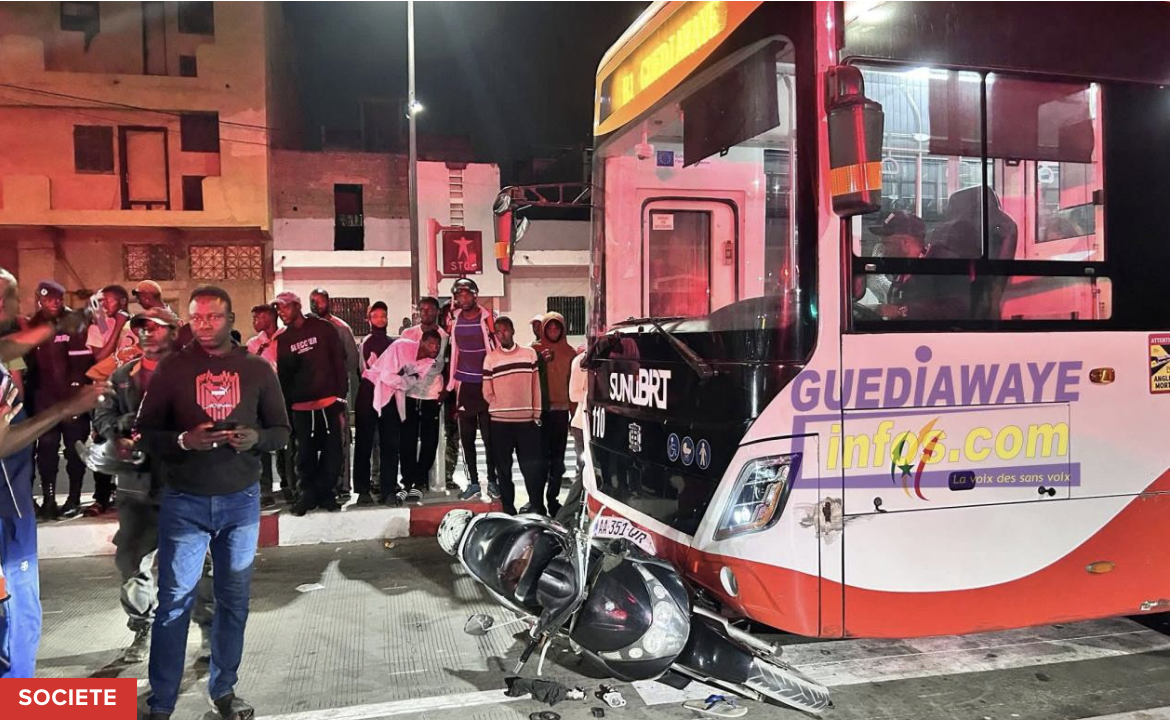 Un accident impliquant un bus du BRT s’est produit mardi soir à Guédiawaye, près du terminus de l’arrêt 24. Un motocycliste a été violemment percuté alors qu’il traversait.
