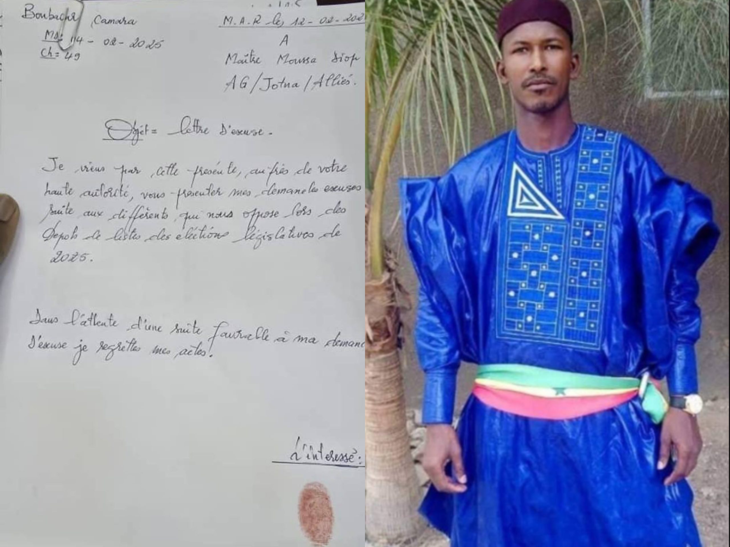 Après avoir confisqué et avoir disparu avec les listes de AG/JOTNA avec de la complicité interne et externe, Monsieur Boubacar Camara adjoint au maire de Thies Nord et ex-mandataire aux législatives a été déclaré COUPABLE et condamné à une peine de 3 mois avec sursis et 500.000 f d’amende après avoir présenté des EXCUSES ECRITES ET PUBLIQUES à la barre« , a annoncé Me Moussa Diop.