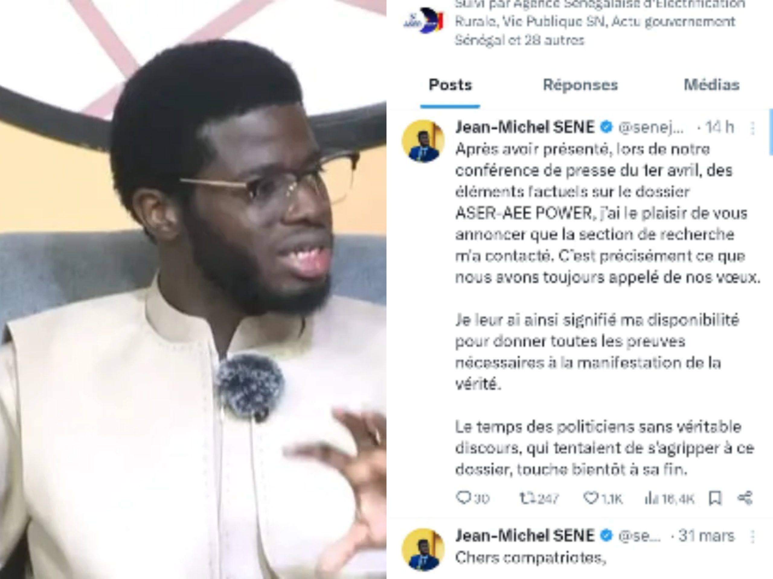 Le dossier de l’Agence sénégalaise d’électrification rurale, ASER, longtemps entouré de zones d’ombre et de soupçons persistants, semble entrer dans une phase décisive. En effet, le Directeur général de l’ASER, Jean Michel Sène, a lui-même annoncé sur les réseaux sociaux sa convocation par les gendarmes de la Section de Recherches.
