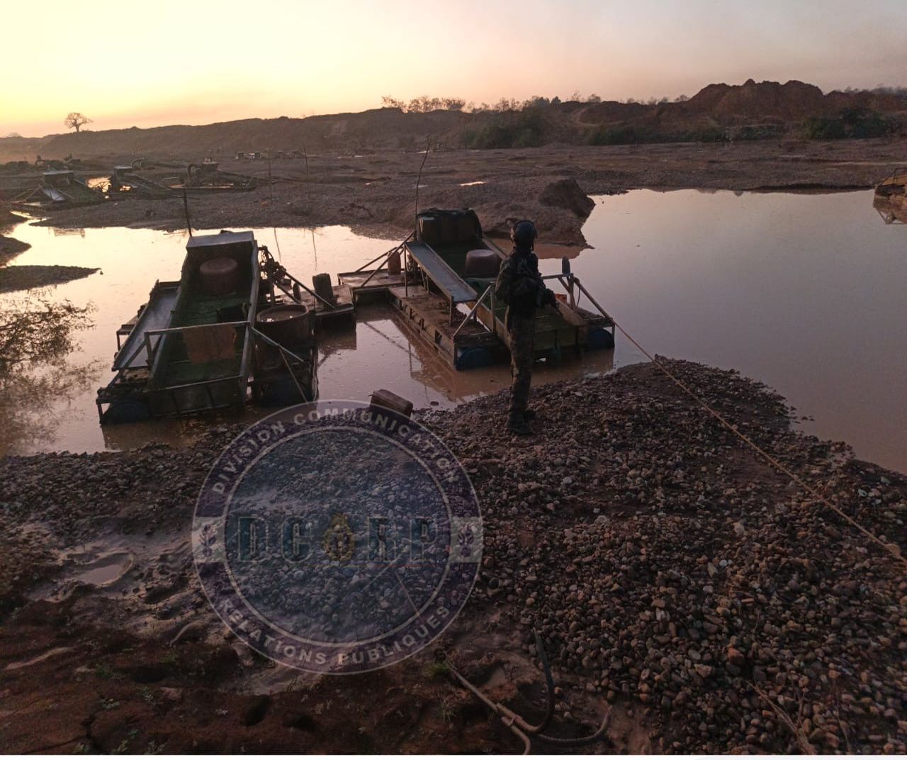 L’intervention a permis la neutralisation de treize (13) dragues et de deux (02) groupes électrogènes utilisés par des exploitants illégaux d’or alluvionnaire. Les autorités soulignent que ces équipements contribuaient à l’exploitation illicite des ressources minières ainsi qu’à une dégradation accélérée de l’environnement.
