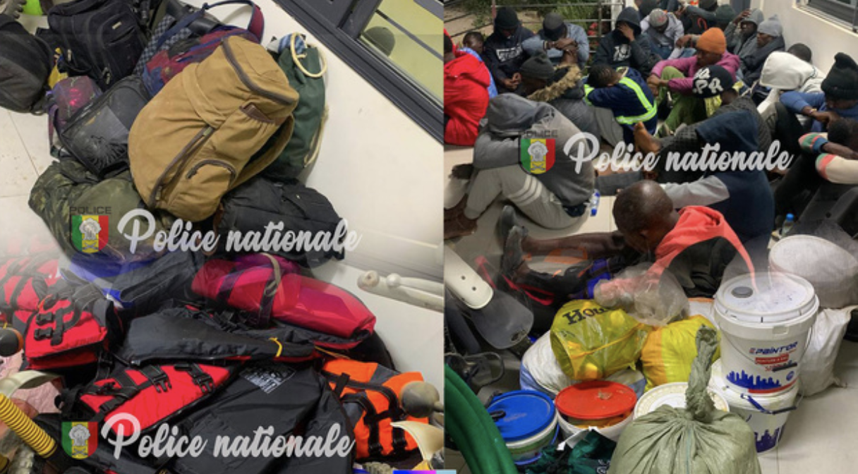 La Division nationale de lutte contre le trafic de migrants a intercepté 73 migrants irréguliers à Mbour, suite à un renseignement signalant un départ prévu depuis Pointe Sarène. Deux individus ont été arrêtés en premier, puis les migrants ont été retrouvés avec du matériel : gilets de sauvetage, passeports, cartes CEDEAO, pompe à eau et vivres.