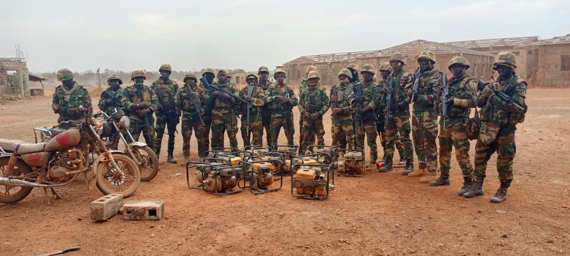 Sept personnes ont été interpellées lors de ces opérations. Les militaires ont également saisi un important lot de matériel, dont des groupes électrogènes, des panneaux, des motocyclettes et divers équipements utilisés pour l’extraction illégale de l’or, mettant en lumière le niveau d’organisation de ces activités.
