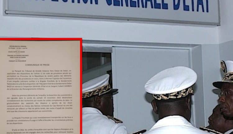 L’adjudant-chef de la gendarmerie Didier Badji en service à l’Inspection générale d’Etat et le Sergent Fulbert Sambou de la Direction générale des renseignements militaires ont été porté disparu, selon un communiqué du parquet du tribunal de grande instance Hors classe de Dakar rendu public ce mardi 22 novembre 2022.